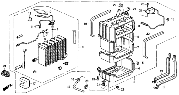 Honda Accord parts. Parts like A/C Cooling Unit are shipped directly from authorized Honda dealers and backed by the manufacturer's warranty. Parts fit for the following vehicle options. Body & Trim: 2 Door EX. Emission & Transmission: KL 4AT.