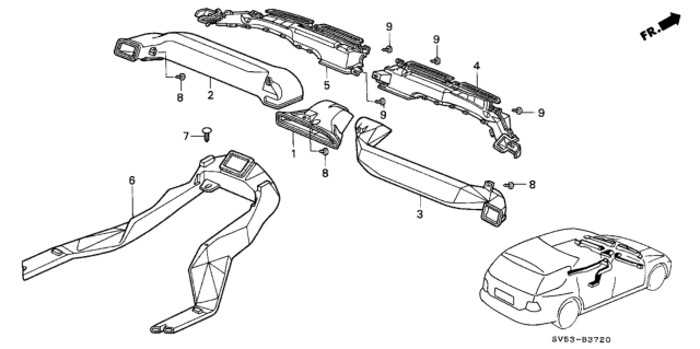 Honda Accord parts. Parts like Ventilation Duct are shipped directly from authorized Honda dealers and backed by the manufacturer's warranty. Parts fit for the following vehicle options. Body & Trim: 5 Door EX. Emission & Transmission: KA 5MT.