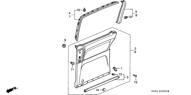 Honda Odyssey parts. Parts like Slide Door Lining are shipped directly from authorized Honda dealers and backed by the manufacturer's warranty. Parts fit for the following vehicle options. Body & Trim: 5 Door EX (NAVIGATION). Emission & Transmission: KA 4AT.