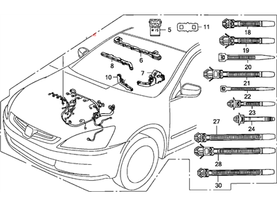 Honda Accord parts. Parts like Engine Wire Harness (L4) are shipped directly from authorized Honda dealers and backed by the manufacturer's warranty. Parts fit for the following vehicle options. Body & Trim: 4 Door EX. Emission & Transmission: KA 5AT.