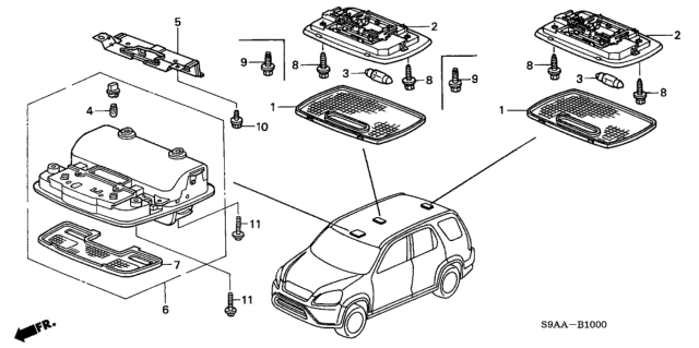 Honda CR-V parts. Parts like Interior Light are shipped directly from authorized Honda dealers and backed by the manufacturer's warranty. Parts fit for the following vehicle options. Body & Trim: 5 Door SE. Emission & Transmission: KA 5AT.