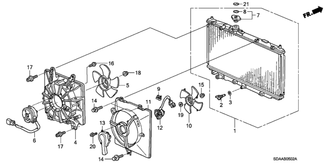 Diagram (1 of 1): Radiator (V6) (Denso)