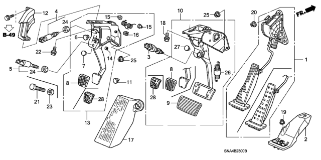 Honda Civic parts. Parts like Pedal are shipped directly from authorized Honda dealers and backed by the manufacturer's warranty. Parts fit for the following vehicle options. Body & Trim: 4 Door SI. Emission & Transmission: KA 6MT.