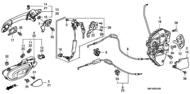 Honda Civic parts. Parts like Front Door Locks - Outer Handle are shipped directly from authorized Honda dealers and backed by the manufacturer's warranty. Parts fit for the following vehicle options. Body & Trim: 4 Door GX. Emission & Transmission: KA 5AT.