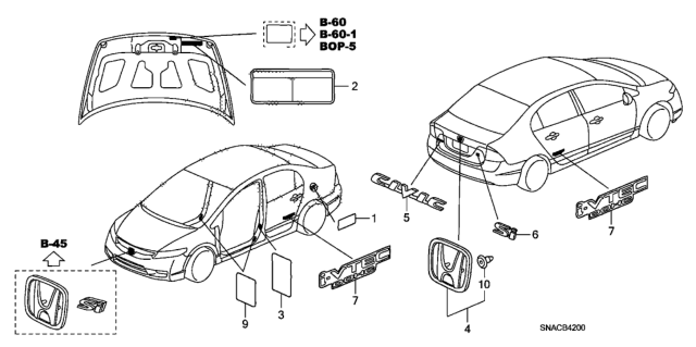 Honda Civic parts. Parts like Emblems - Caution Labels are shipped directly from authorized Honda dealers and backed by the manufacturer's warranty. Parts fit for the following vehicle options. Body & Trim: 4 Door SI (HPT). Emission & Transmission: KA 6MT.