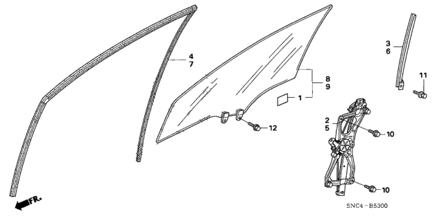 Honda Civic parts. Parts like Front Door Glass - Door Regulator are shipped directly from authorized Honda dealers and backed by the manufacturer's warranty. Parts fit for the following vehicle options. Body & Trim: 4 Door MX (HYBRID). Emission & Transmission: KA CVT.