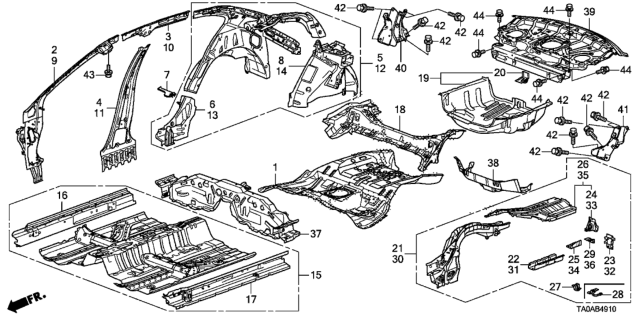 Honda Accord parts. Parts like Floor - Inner Panel are shipped directly from authorized Honda dealers and backed by the manufacturer's warranty. Parts fit for the following vehicle options. Body & Trim: 4 Door LX+. Emission & Transmission: KA 5AT.