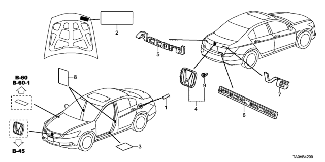 Honda Accord parts. Parts like Emblems - Caution Labels are shipped directly from authorized Honda dealers and backed by the manufacturer's warranty. Parts fit for the following vehicle options. Body & Trim: 4 Door LX+. Emission & Transmission: KA 5AT.