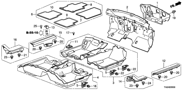 HondaPartsNow.com offers the wholesale prices for genuine 2012 Honda Accord parts. Parts like Floor Mat are shipped directly from authorized Honda dealers and backed by the manufacturer's warranty. Parts fit for the following vehicle options. Body & Trim: 4 Door LX+. Emission & Transmission: KA 5AT.