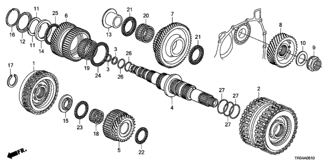 Honda Civic parts. Parts like AT Secondary Shaft - Clutch (Low/2nd-4th) are shipped directly from authorized Honda dealers and backed by the manufacturer's warranty. Parts fit for the following vehicle options. Body & Trim: 4 Door EX (NAVIGATION). Emission & Transmission: KA 5AT.