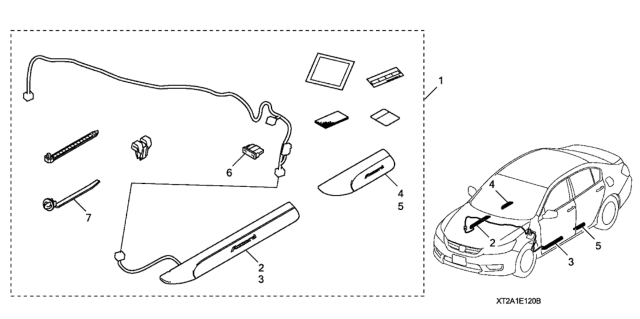Honda Accord parts. Parts like Door Sill Trim (Illuminated) are shipped directly from authorized Honda dealers and backed by the manufacturer's warranty. Parts fit for the following vehicle options. Body & Trim: 4 Door EXL-V6 (NAVIGATION). Emission & Transmission: KL 6AT.