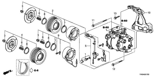 Honda Civic parts. Parts like A/C Air Conditioner (Compressor) (1.8L) are shipped directly from authorized Honda dealers and backed by the manufacturer's warranty. Parts fit for the following vehicle options. Body & Trim: 4 Door LX. Emission & Transmission: KL 5AT.