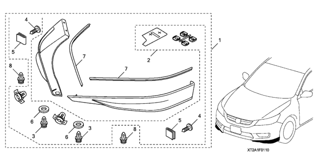 Honda Accord Hybrid parts. Parts like Front Underbody Spoiler are shipped directly from authorized Honda dealers and backed by the manufacturer's warranty. Parts fit for the following vehicle options. Body & Trim: 4 Door HYBRID (TOURING). Emission & Transmission: KA CVT.