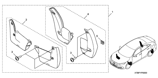 Honda Civic parts. Parts like Splash Guards are shipped directly from authorized Honda dealers and backed by the manufacturer's warranty. Parts fit for the following vehicle options. Body & Trim: 4 Door SI (HI-PERF TIRES). Emission & Transmission: KA 6MT.