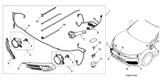 Honda Civic parts. Parts like Foglight (With Lanewatch) are shipped directly from authorized Honda dealers and backed by the manufacturer's warranty. Parts fit for the following vehicle options. Body & Trim: 4 Door EX-A (AEP/HDM CVT/SNS). Emission & Transmission: KA CVT.