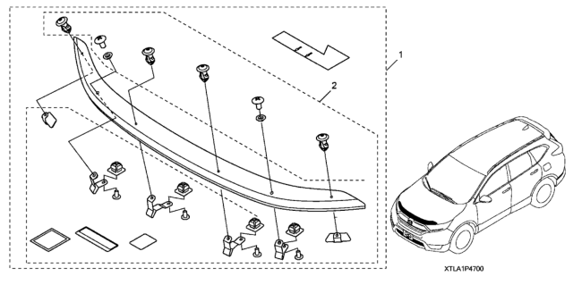 Honda CR-V parts. Parts like Hood Air Deflector are shipped directly from authorized Honda dealers and backed by the manufacturer's warranty. Parts fit for the following vehicle options. Body & Trim: 5 Door TOURIN (2WD/E.LIBERTY). Emission & Transmission: KA CVT.