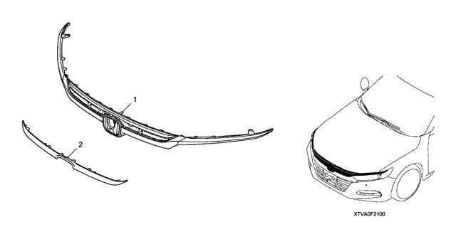 Honda Accord Hybrid parts. Parts like Front Grille - Front Grille Molding are shipped directly from authorized Honda dealers and backed by the manufacturer's warranty. Parts fit for the following vehicle options. Body & Trim: 4 Door EX. Emission & Transmission: KA CVT.