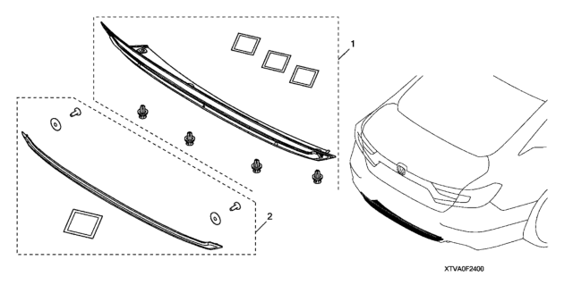 Honda Accord Hybrid parts. Parts like Rear Under Garnish - Garnish Accent are shipped directly from authorized Honda dealers and backed by the manufacturer's warranty. Parts fit for the following vehicle options. Body & Trim: 4 Door EX. Emission & Transmission: KA CVT.