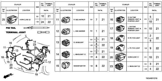 Honda Civic parts. Parts like Electrical Connectors (Front) (LED Headlight) are shipped directly from authorized Honda dealers and backed by the manufacturer's warranty. Parts fit for the following vehicle options. Body & Trim: 2 Door TOUR (TURBO). Emission & Transmission: KA CVT.
