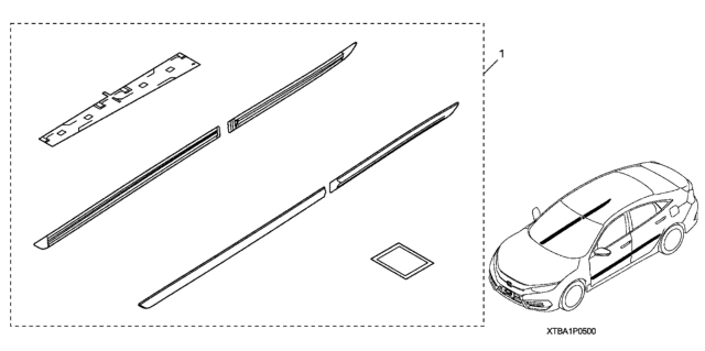 Honda Civic parts. Parts like Body Side Molding are shipped directly from authorized Honda dealers and backed by the manufacturer's warranty. Parts fit for the following vehicle options. Body & Trim: 4 Door LX (HCM ENGINE). Emission & Transmission: KL CVT.