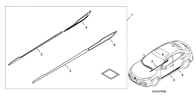 Honda Civic parts. Parts like Lower Door Trim (Chrome) are shipped directly from authorized Honda dealers and backed by the manufacturer's warranty. Parts fit for the following vehicle options. Body & Trim: 5 Door EX. Emission & Transmission: KA CVT.