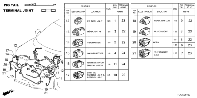 Honda Civic parts. Parts like Electrical Connectors (Front) (Halogen) are shipped directly from authorized Honda dealers and backed by the manufacturer's warranty. Parts fit for the following vehicle options. Body & Trim: 5 Door EX. Emission & Transmission: KA CVT.