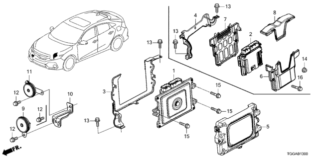 Honda Civic parts. Parts like Control Unit (Engine Room) are shipped directly from authorized Honda dealers and backed by the manufacturer's warranty. Parts fit for the following vehicle options. Body & Trim: 5 Door LX. Emission & Transmission: KA CVT.