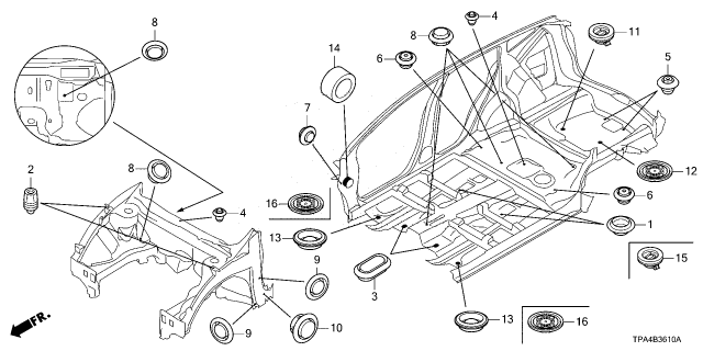 Honda CR-V Hybrid parts. Parts like Grommet (Front) are shipped directly from authorized Honda dealers and backed by the manufacturer's warranty. Parts fit for the following vehicle options. Body & Trim: 5 Door Touring. Emission & Transmission: CVT.