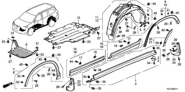 Honda Pilot parts. Parts like Side Sill Garnish are shipped directly from authorized Honda dealers and backed by the manufacturer's warranty. Parts fit for the following vehicle options. Body & Trim: 5 Door Elite AWD. Emission & Transmission: 9AT.