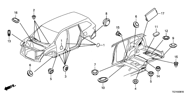Honda Pilot parts. Parts like Grommet are shipped directly from authorized Honda dealers and backed by the manufacturer's warranty. Parts fit for the following vehicle options. Body & Trim: 5 Door EX-L AWD. Emission & Transmission: 9AT.