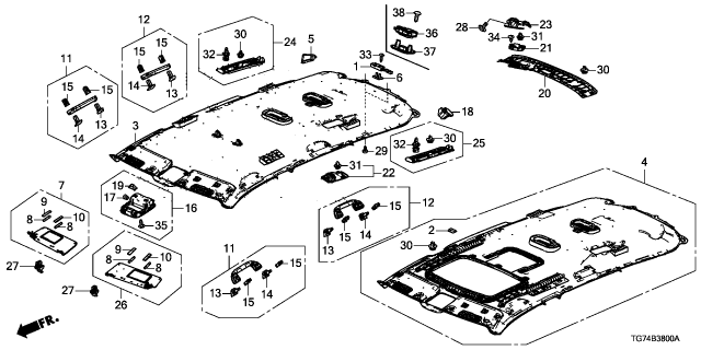 Honda Pilot parts. Parts like Roof Lining are shipped directly from authorized Honda dealers and backed by the manufacturer's warranty. Parts fit for the following vehicle options. Body & Trim: 5 Door EX-L AWD. Emission & Transmission: 9AT.
