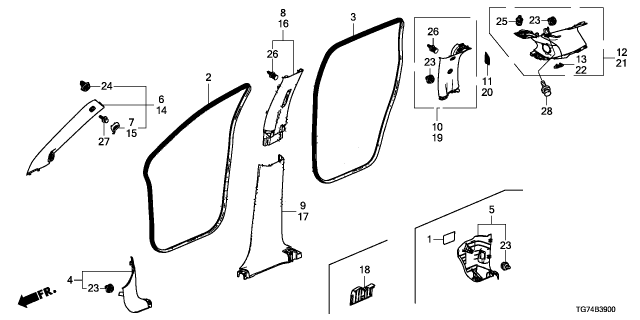 Honda Pilot parts. Parts like Pillar Garnish are shipped directly from authorized Honda dealers and backed by the manufacturer's warranty. Parts fit for the following vehicle options. Body & Trim: 5 Door Touring 7-Passenger 2WD. Emission & Transmission: 9AT.