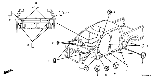 Honda Ridgeline parts. Parts like Grommet (Front) are shipped directly from authorized Honda dealers and backed by the manufacturer's warranty. Parts fit for the following vehicle options. Body & Trim: 4 Door RTL AWD. Emission & Transmission: 9AT.