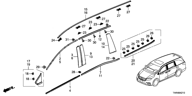 Honda Odyssey parts. Parts like Molding are shipped directly from authorized Honda dealers and backed by the manufacturer's warranty. Parts fit for the following vehicle options. Body & Trim: 5 Door Touring. Emission & Transmission: 10AT.