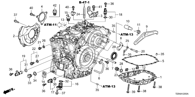 Honda Civic parts. Parts like AT Transmission Case Components are shipped directly from authorized Honda dealers and backed by the manufacturer's warranty. Parts fit for the following vehicle options. Body & Trim: 4 Door Sport. Emission & Transmission: CVT.