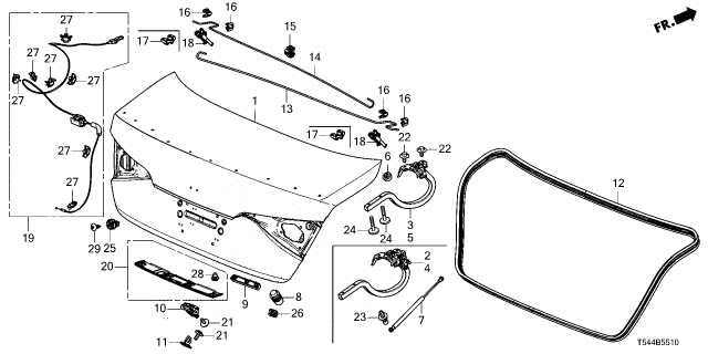 Honda Civic Hybrid parts. Parts like Trunk Lid are shipped directly from authorized Honda dealers and backed by the manufacturer's warranty. Parts fit for the following vehicle options. Body & Trim: 4 Door Sport. Emission & Transmission: CVT.