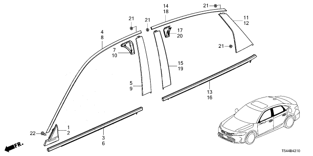 Honda Civic Hybrid parts. Parts like Molding are shipped directly from authorized Honda dealers and backed by the manufacturer's warranty. Parts fit for the following vehicle options. Body & Trim: 4 Door Sport. Emission & Transmission: CVT.