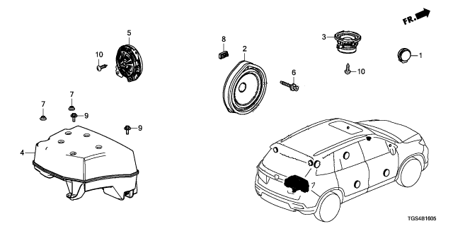 Honda Passport parts. Parts like Speaker are shipped directly from authorized Honda dealers and backed by the manufacturer's warranty. Parts fit for the following vehicle options. Body & Trim: 5 Door Black Edition AWD. Emission & Transmission: 9AT.