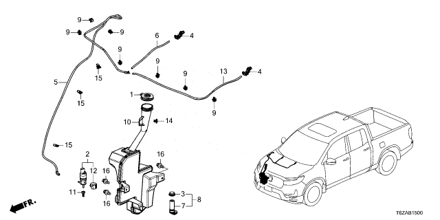 Honda Ridgeline parts. Parts like Windshield Washer are shipped directly from authorized Honda dealers and backed by the manufacturer's warranty. Parts fit for the following vehicle options. Body & Trim: 4 Door Black Edition AWD. Emission & Transmission: 9AT.