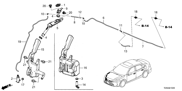 Honda Civic parts. Parts like Windshield Washer are shipped directly from authorized Honda dealers and backed by the manufacturer's warranty. Parts fit for the following vehicle options. Body & Trim: 4 Door LX 2WD. Emission & Transmission: CVT.