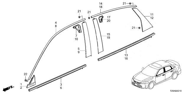 Honda Civic parts. Parts like Molding are shipped directly from authorized Honda dealers and backed by the manufacturer's warranty. Parts fit for the following vehicle options. Body & Trim: 4 Door LX 2WD. Emission & Transmission: CVT.
