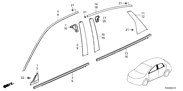Honda Civic parts. Parts like Molding are shipped directly from authorized Honda dealers and backed by the manufacturer's warranty. Parts fit for the following vehicle options. Body & Trim: 5 Door Sport FWD. Emission & Transmission: CVT.
