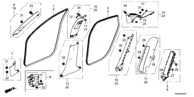 Honda Civic parts. Parts like Pillar Garnish are shipped directly from authorized Honda dealers and backed by the manufacturer's warranty. Parts fit for the following vehicle options. Body & Trim: 5 Door Sport FWD. Emission & Transmission: CVT.