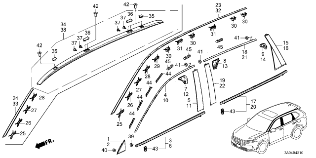 Honda CR-V parts. Parts like Molding are shipped directly from authorized Honda dealers and backed by the manufacturer's warranty. Parts fit for the following vehicle options. Body & Trim: 5 Door EX AWD. Emission & Transmission: CVT.
