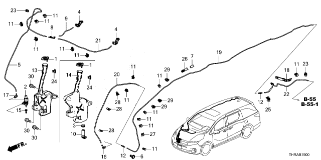 Honda Odyssey parts. Parts like Windshield Washer are shipped directly from authorized Honda dealers and backed by the manufacturer's warranty. Parts fit for the following vehicle options. Body & Trim: 5 Door EX-L. Emission & Transmission: 10AT.