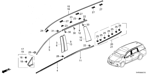 Honda Odyssey parts. Parts like Molding are shipped directly from authorized Honda dealers and backed by the manufacturer's warranty. Parts fit for the following vehicle options. Body & Trim: 5 Door Sport-L. Emission & Transmission: 10AT.