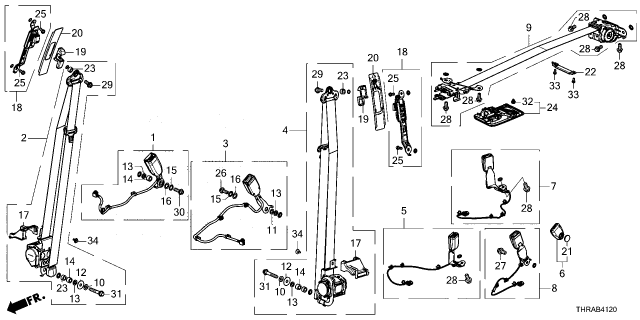 Honda Odyssey parts. Parts like Seat Belts (Front/Middle) are shipped directly from authorized Honda dealers and backed by the manufacturer's warranty. Parts fit for the following vehicle options. Body & Trim: 5 Door Touring. Emission & Transmission: 10AT.