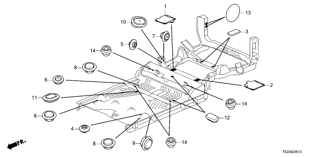 Honda Ridgeline parts. Parts like Grommet (Floor) are shipped directly from authorized Honda dealers and backed by the manufacturer's warranty. Parts fit for the following vehicle options. Body & Trim: 4 Door Black Edition. Emission & Transmission: 9AT.