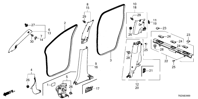 Honda Ridgeline parts. Parts like Pillar Garnish are shipped directly from authorized Honda dealers and backed by the manufacturer's warranty. Parts fit for the following vehicle options. Body & Trim: 4 Door RTL. Emission & Transmission: 9AT.